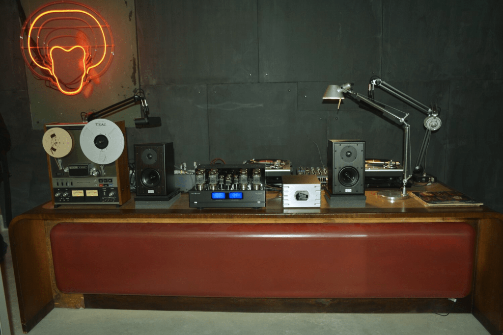 The DJ Booth, conceived by artist Theaster Gates, includes a custom desk from the former Johnson Publishing Company (Ebony/Jet) headquarters in downtown Chicago designed by Arthur Elrod. It pays homage to African American culture and history.